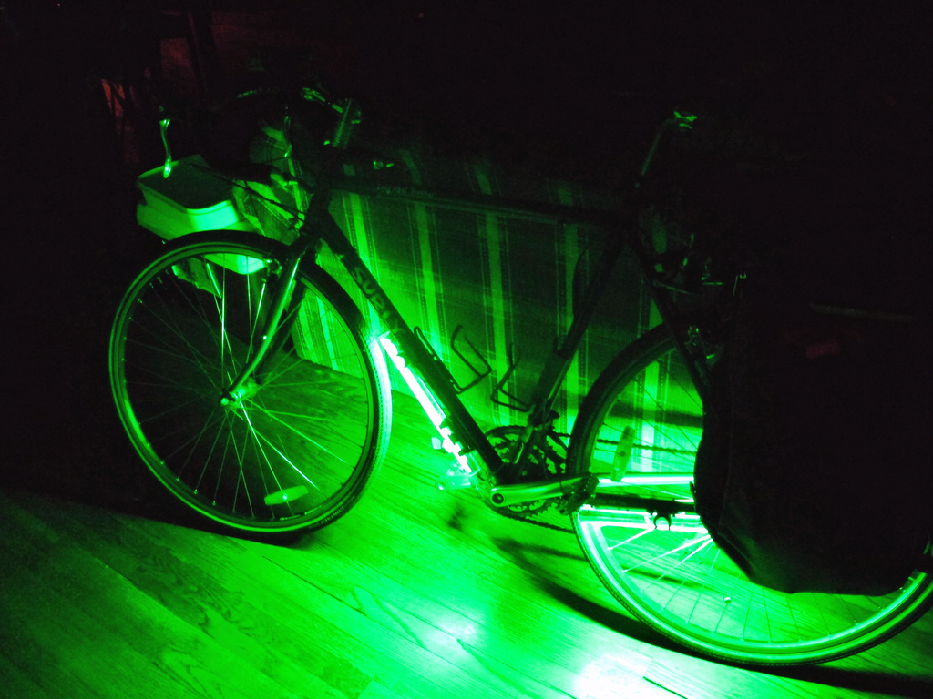 The days are getting longer and more of my rides are taking place in the dark. Seemed like a perfect time to put my ground effect lights on the new bike. I had forgotten what a wonderful effect these lights have on my rides. Cars pass with a lot more space with these babies turned on.