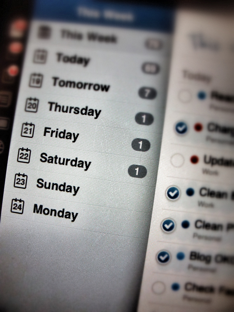 It was a week of lots of work and very little time in which to do it. I ended up dusting off the good old to-do list to get some organization in my life. color computer Photography project-365 remember-the-milk to-do See also Nik Snapseed Project 365 - Day 26: Wishful Thinking Project 365 - Day 47: Hors d'oeuvre So far so good with homemade pesto. Random Picture of the Day - 06/14/2004